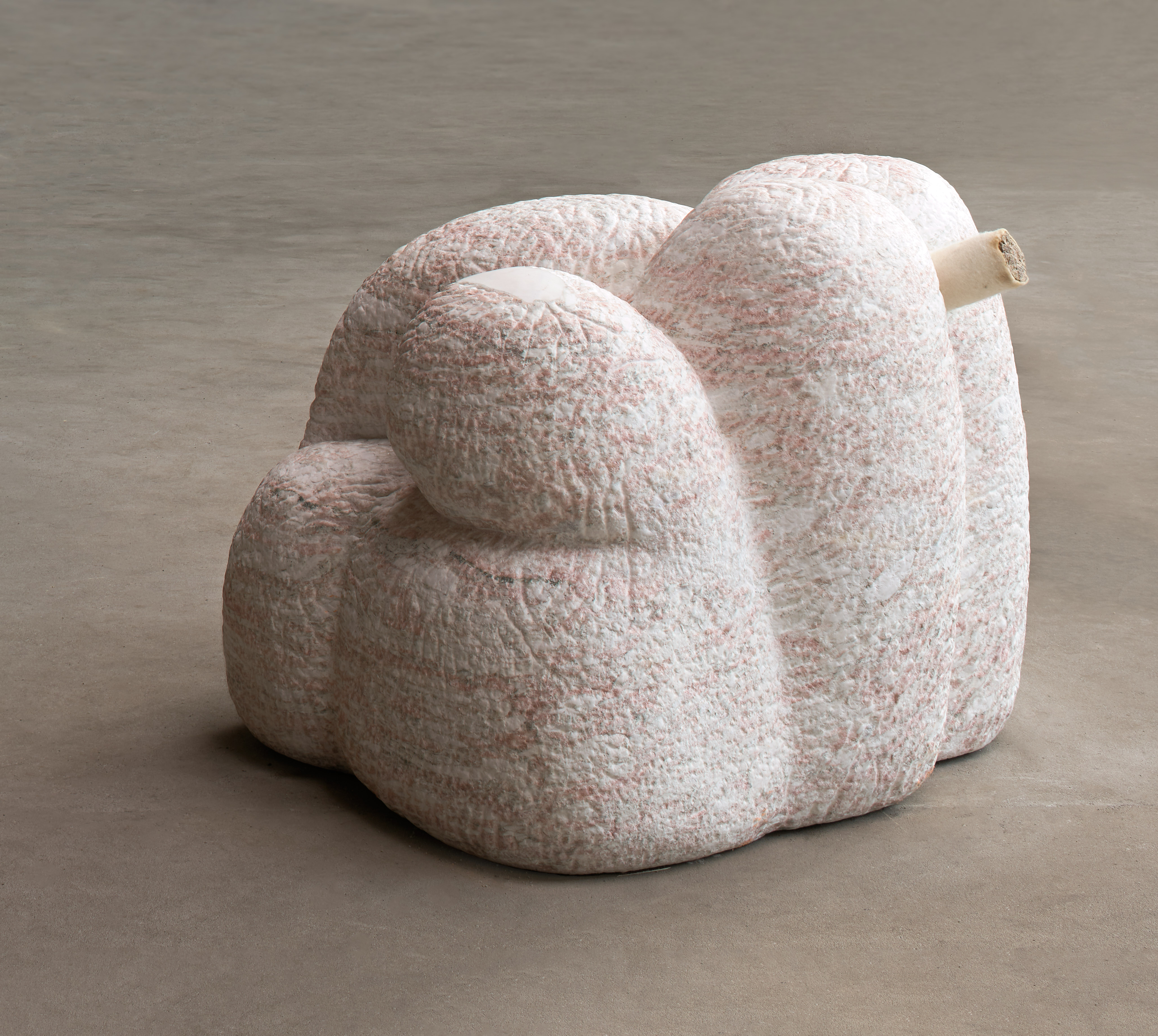 Repose, 2021: Norwegian rose marble, Travertine Noce, Finnsheep wool: 105cm 160cm 120cm